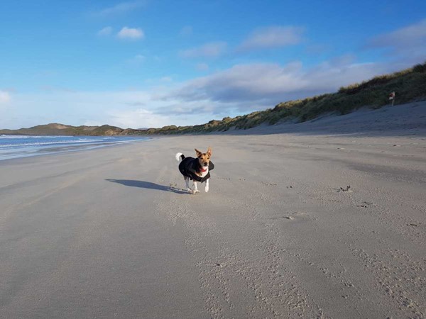A whiffy dog is a delight for the midges - so if you don’t want your pet to be bothered, we recommend you give them a good hose down or a bath and dry well. We carry a few spare old dog-towels, and are more than happy to lend or give them to you for your travel with your pet.